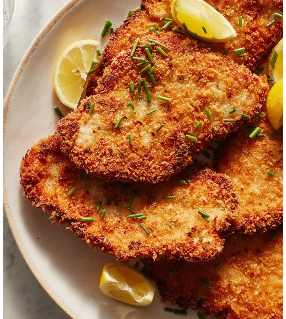 Scallopina di Pollo (gepaneerde kipfilet, natuur of met champignonroom- of tomatensaus)